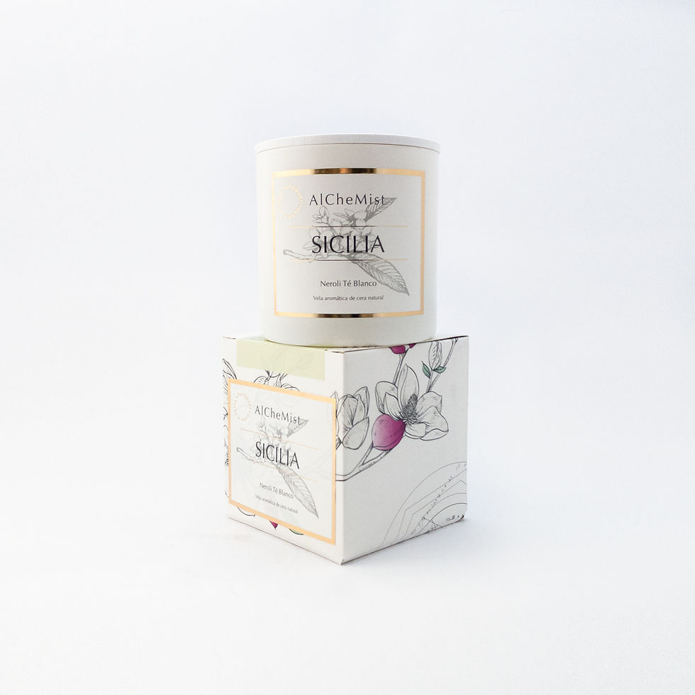SICILIA - NEROLI TÉ BLANCO Vela Grande Blanca Aromática de cera Natural de Soja